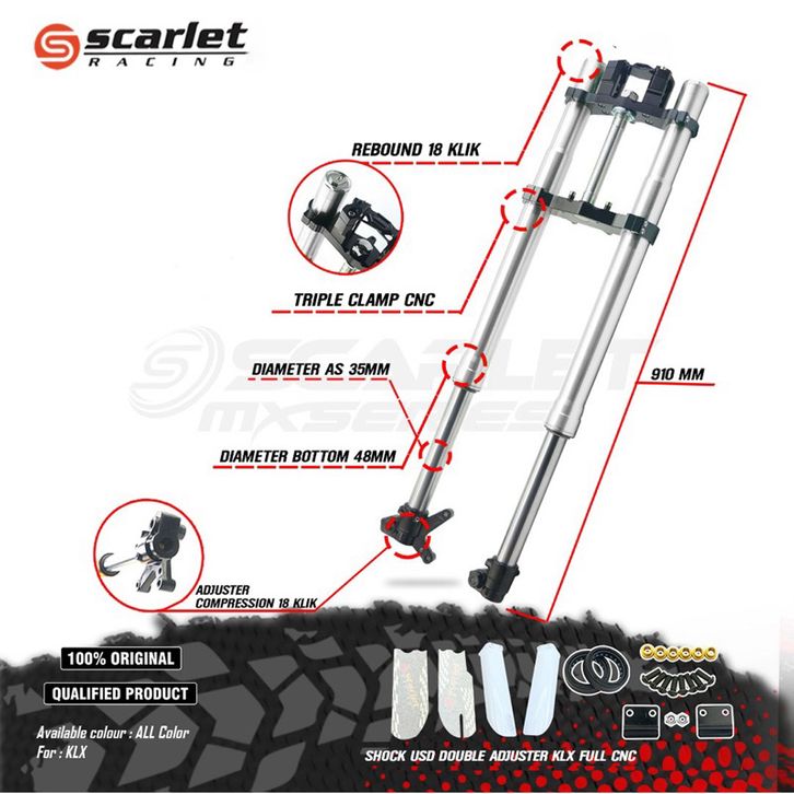Shock KLX / D Tracker USD Double Adjuster 910MM Full CNC + Seal Cadangan + Caver Shock DLL Scarlet Racing