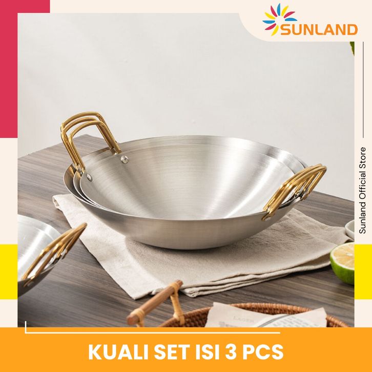 GROSIR SUNLAND Wajan Penggorengan Kuali Set 3 Pcs Mini Stainless Steel Dengan Pegangan Anti Lengket ocafs