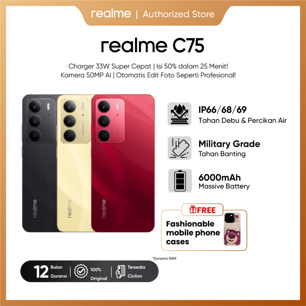 realme C75 8/256GB + Baterai 6000mAh Tahan 3 Hari + Fast Charge 33W | Garansi Resmi+Store Authorized