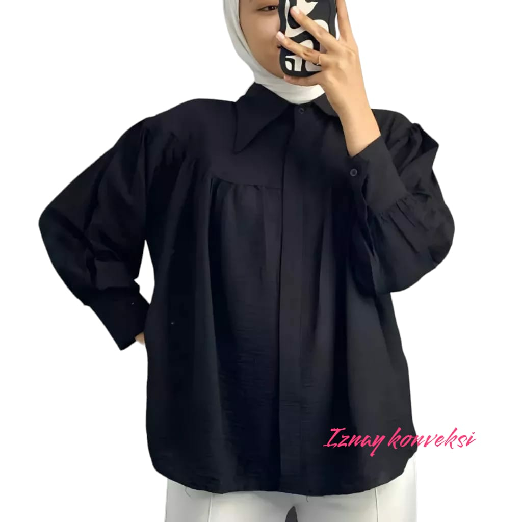 (Gratis Ongkir) Kemeja Blouse Sisil Polo Linen Lengan Balon Oversize