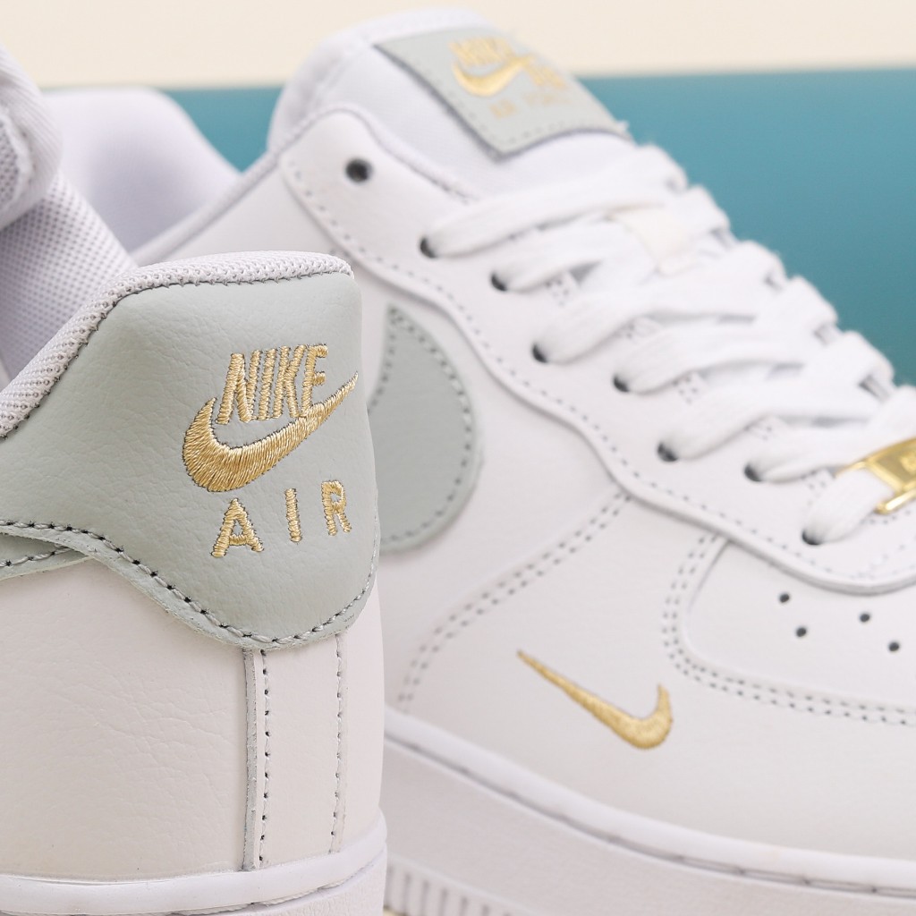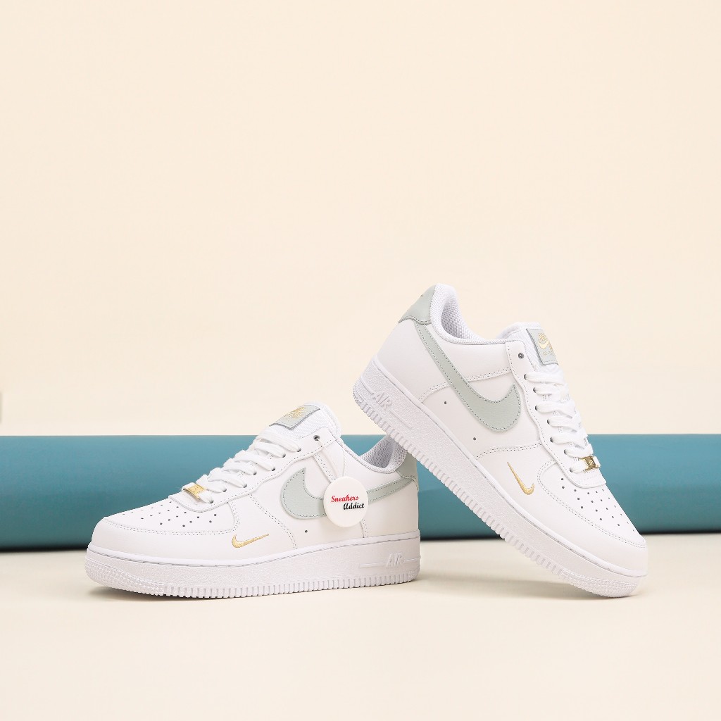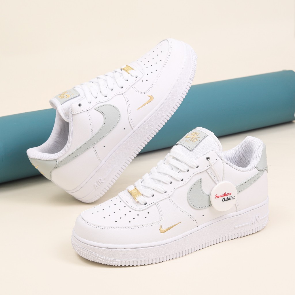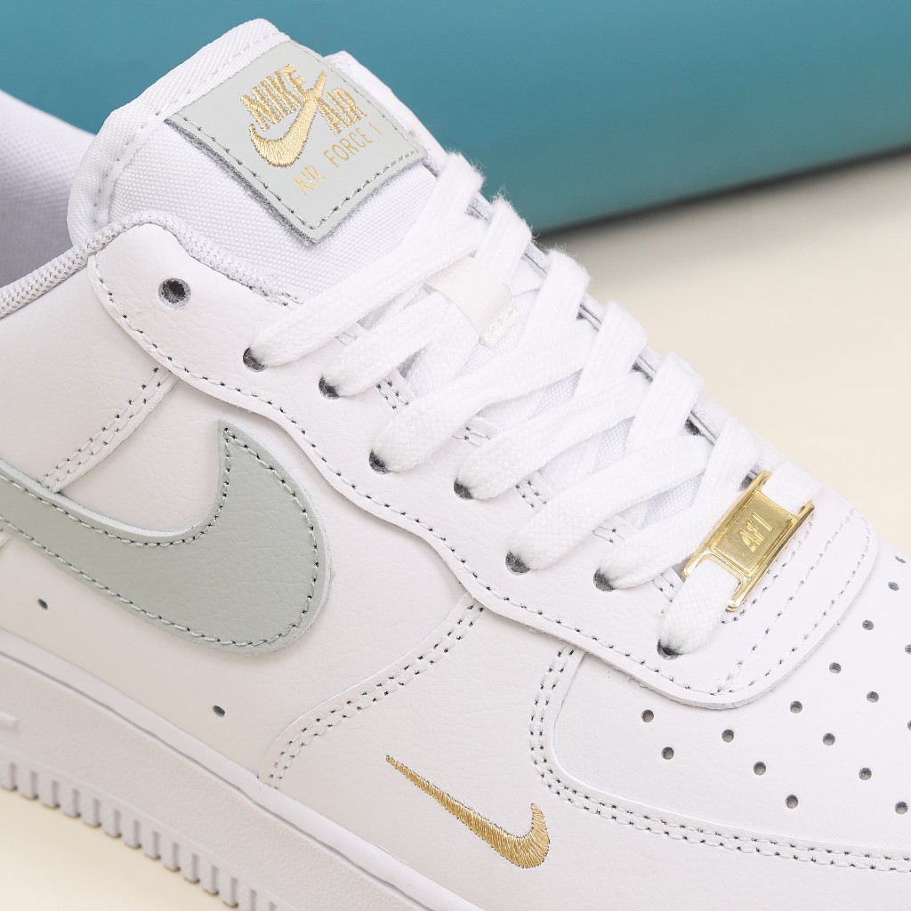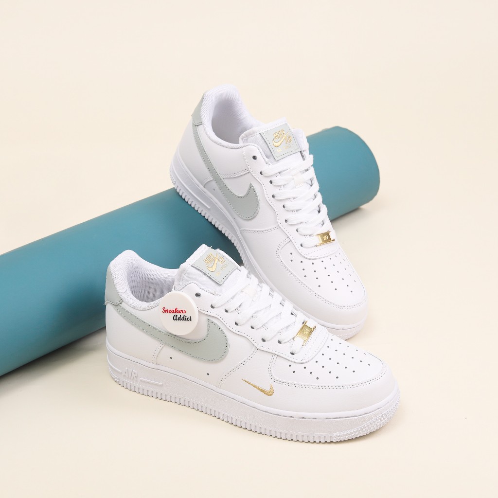 SEPATU SNEAKERS NIKE AIR FORCE 1 ESSENTIALS WHITE GREY MINI SWOOSH 100% BNIB GLOBAL MARKET ORIGINAL OFFICIAL STORE