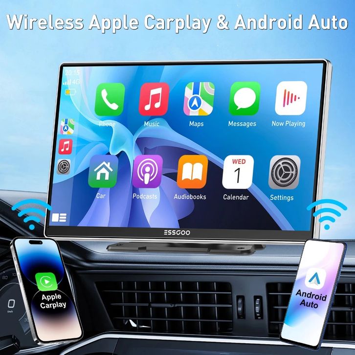 ESSGOO Head unit portable 7 9 10 inch Carplay Nirkabel Portabel Multimedia Mobil Layar Sentuh Monitor IPS FHD