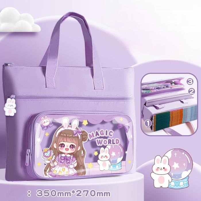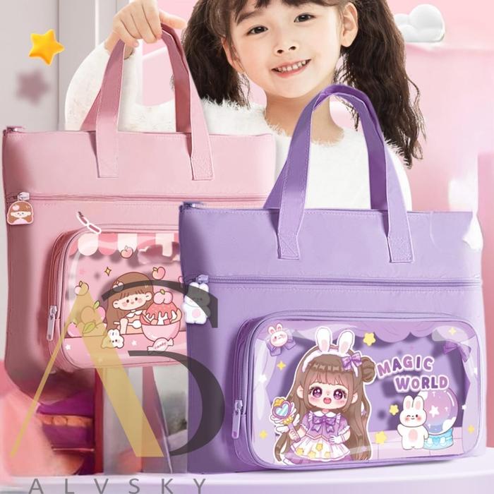 TAS TENTENG ANAK TAS LES KURSUS UNTUK BUKU LES ORGANIZER BUKU SEKOLAH LAKI LAKI PEREMPUAN CANTIK MOTIF FASHION MAGIC WOR