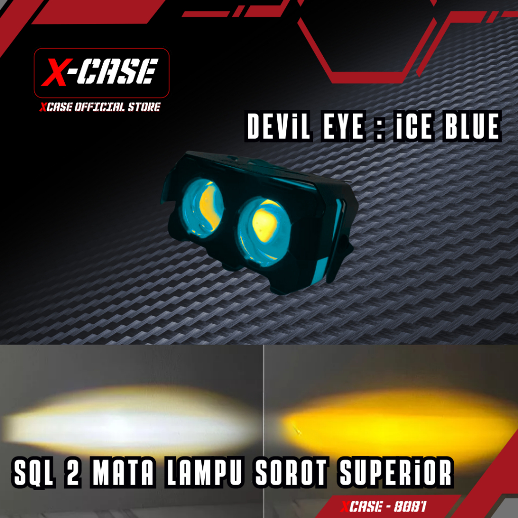 X-Case Lampu Tembak Sql 2 Mata Devil Eye Superior Quality All Weather Jauh Dekat Putih Kuning 8081