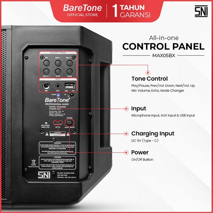 Produk 2025-2026 BareTone Speaker Portable MAX05BX 5 Inch ALL Item