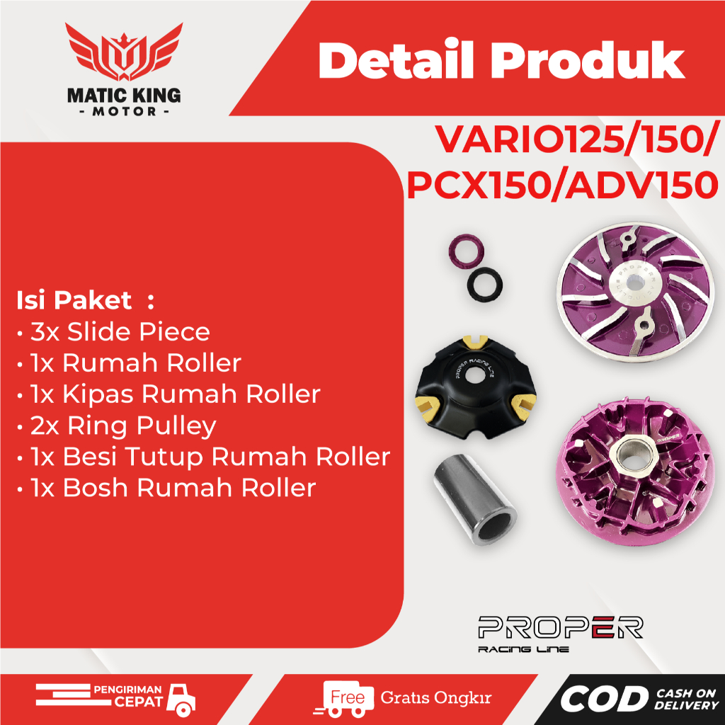 Rumah Roller Big Pulley Set Vario PCX ADV 125 150 KZR K35 K36 K97 Proper Racing Line