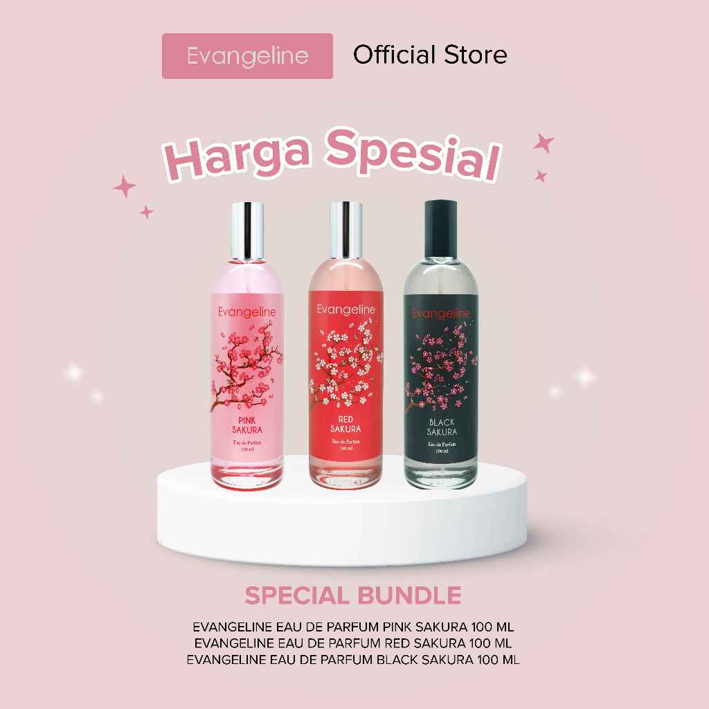 PARFUM EVANGELINE TAHAN LAMA SPECIAL BUNDLE PINK SAKURA RED SAKURA BLACK SAKURA 100ML