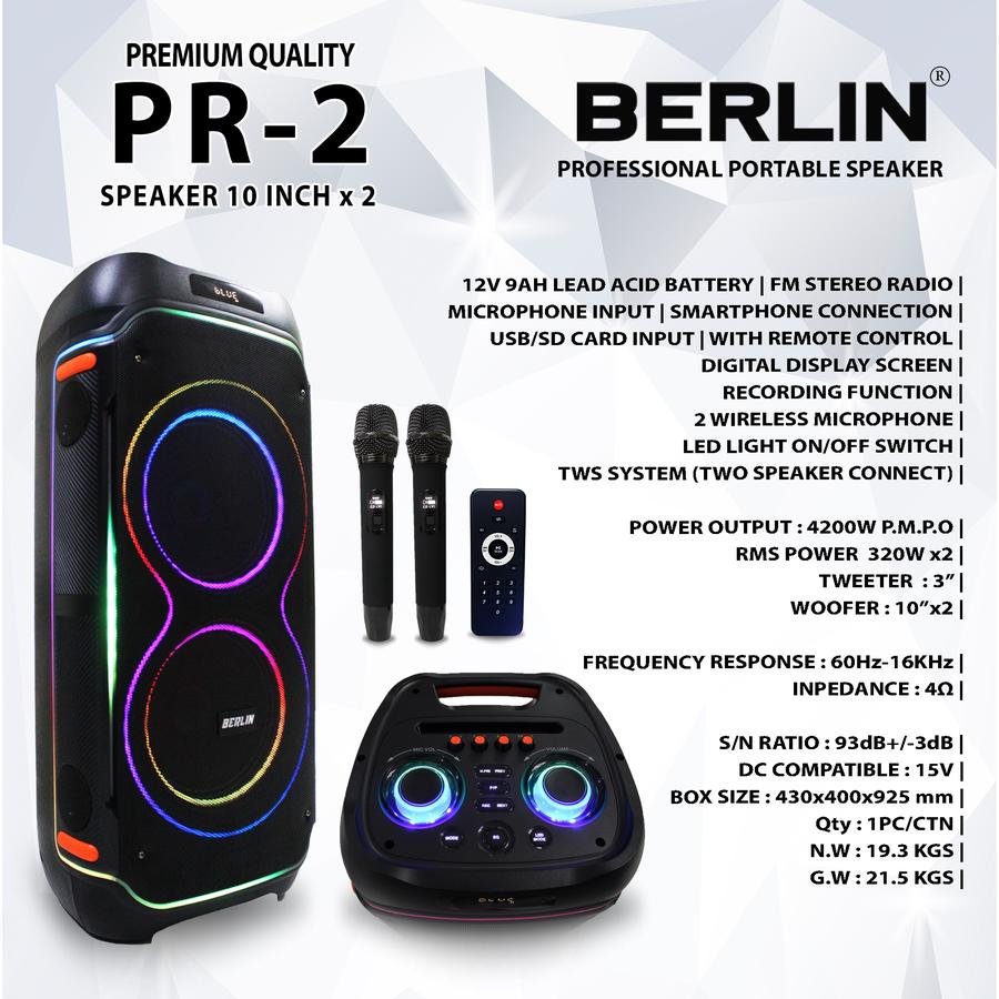 (GRATIS ONGKIR) Berlin Speaker Berlin Portable Bluetooth 10inch Double / PR-2
