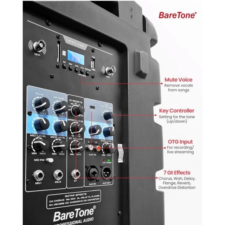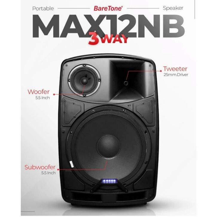 Speaker Portable BareTone MAX12NB Bluetooth 12 Inch Original Rms 500 Watt