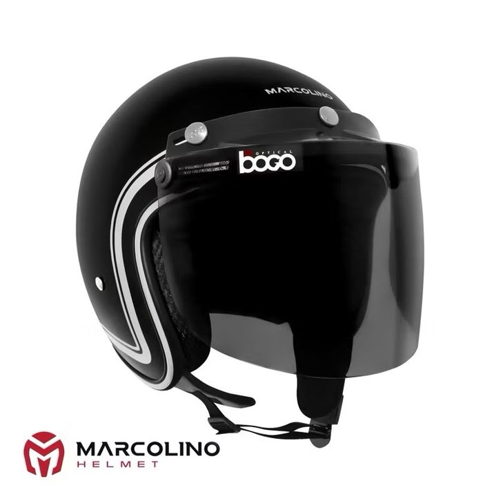 Helm Bogo Retro MarCOOLIno Giano Black Glossy SNI Bogo Original by JMC Helmet