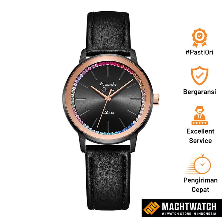 Jam Tangan Wanita Alexandre Christie Passion AC 2A06 LH LBRBA Black Dial Black Leather Strap