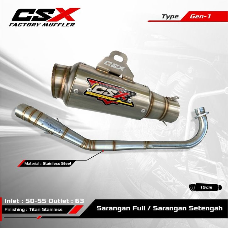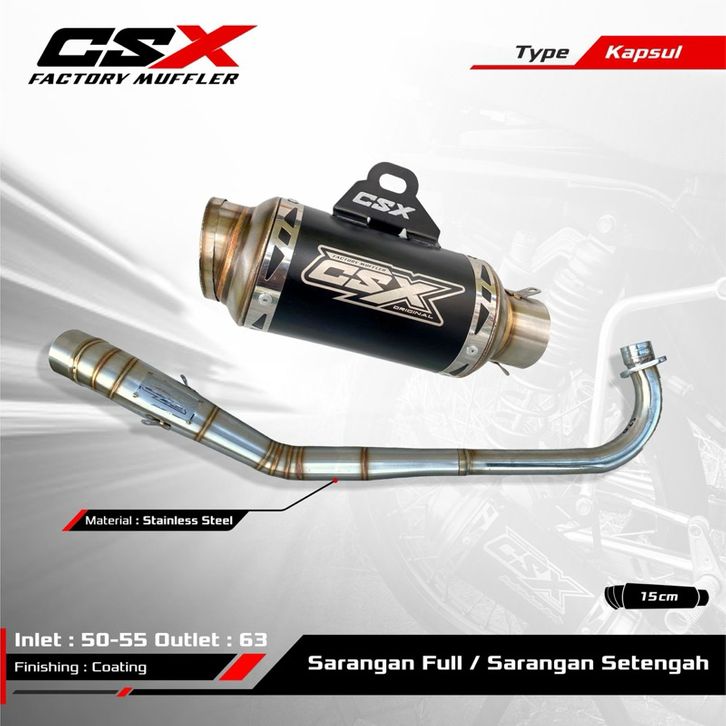 KNALPOT RACING CSX FACTORY MUFFLER – UNTUK SUPRA 125, JUPITER, KARISMA, KPH, VEGA, DAN TIPE LAINNYA