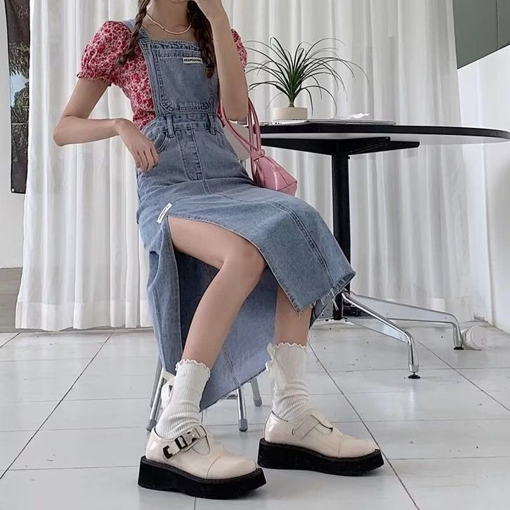 JUMPSUIT WANITA OVERALL SKIRT DENIM ROK KODOK BELAHAN SAMPING-JP008