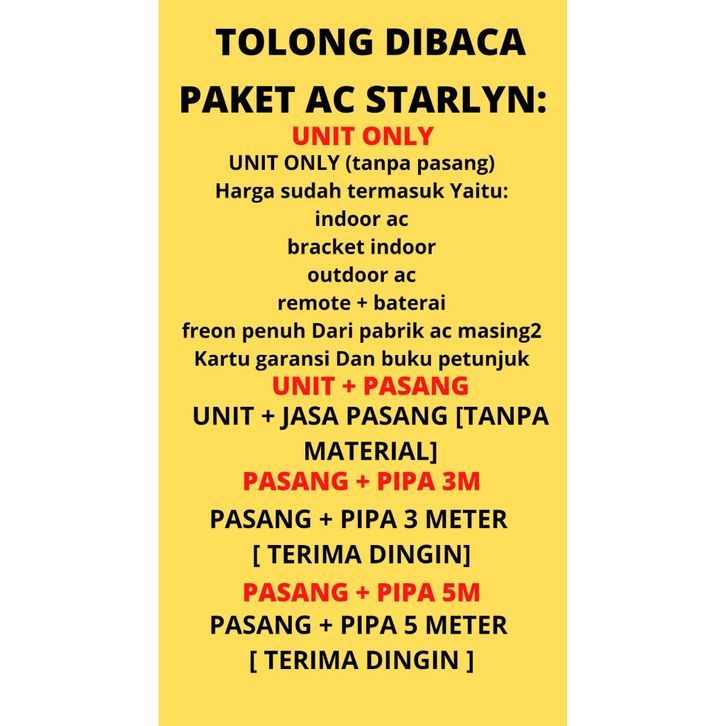 PASANG PIPA 10 M, PASANG PIPA 3 M, PASANG PIPA 5 M, PASANG PIPA 6 M, PASANG PIPA 7 M, PASANG PIPA 8 M, PASANG PIPA 9 M, UNIT + PASANG, UNIT ONLY