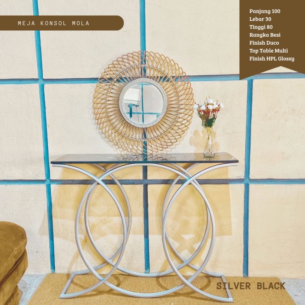 Meja Konsol Minimalis MOLA Meja Ruang Tamu Meja Besi Industrial Motif Marmer / Meja Console