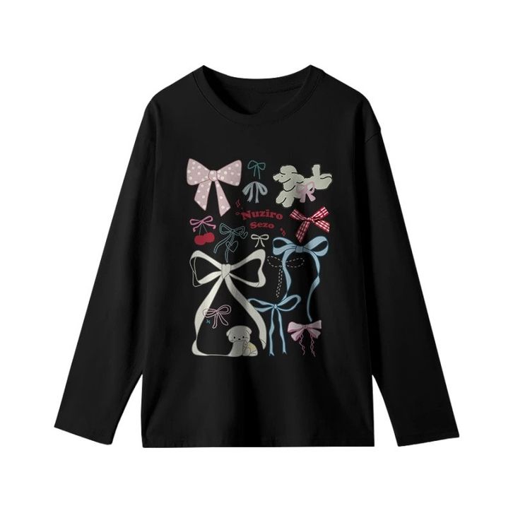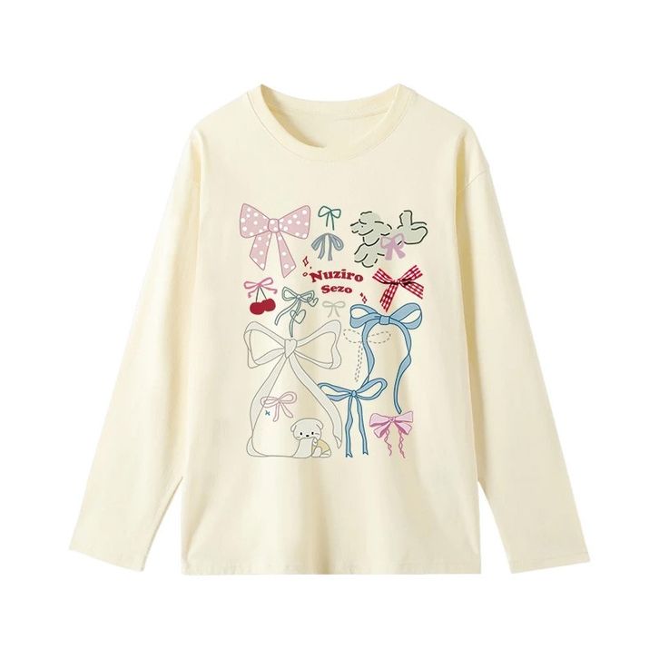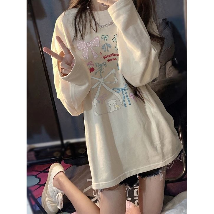 Jessica Kaos Oversize Lengan Panjang Wanita |Motif Pola Pita | Bahan Katun 100% | Gaya Santai Kekinian