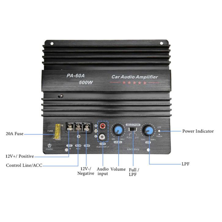 Mono Car Audio Amplifier Board Subwoofer Bass Module 600W