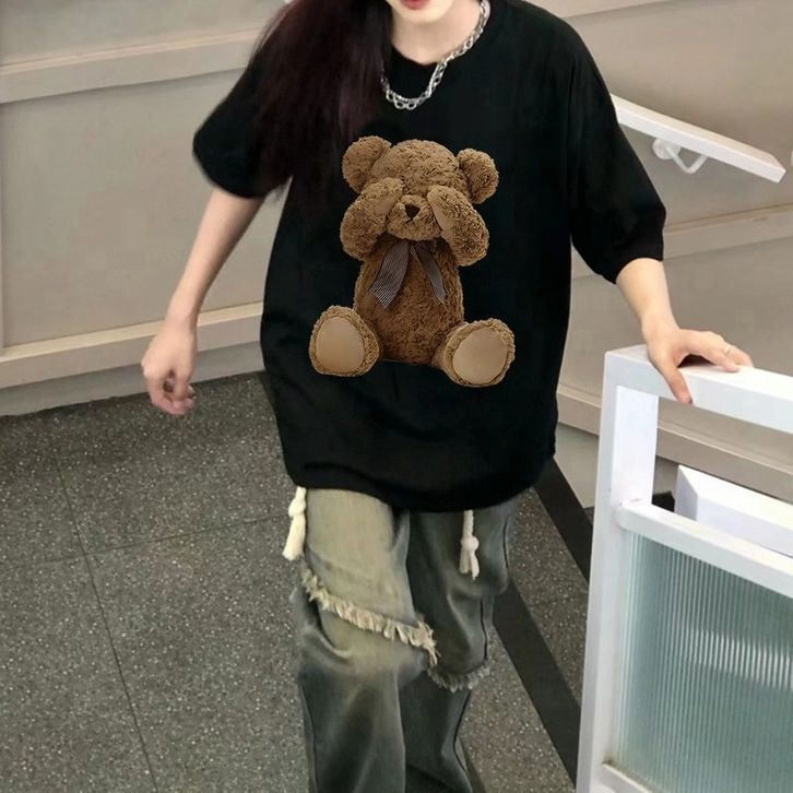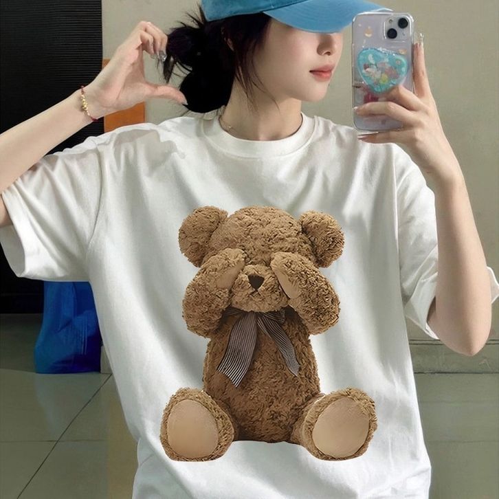 Jessica Korean TShirt Lengan Pendek Kaos Oversize Cetakan (Bear) Korean Style Bahan 100% Cotton