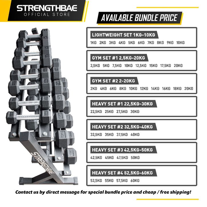 Hex Dumbbell 47,5kg STRENGTHBAE Straight Handle Hexagonal Rubber Dumbel Gym