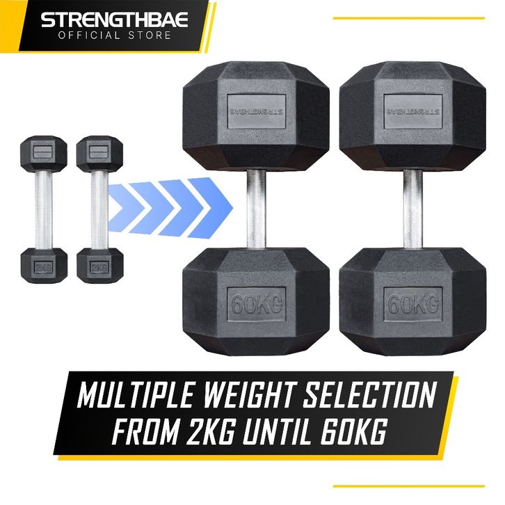 Hex Dumbbell 12kg STRENGTHBAE Straight Handle Hexagonal Rubber Dumbel Gym