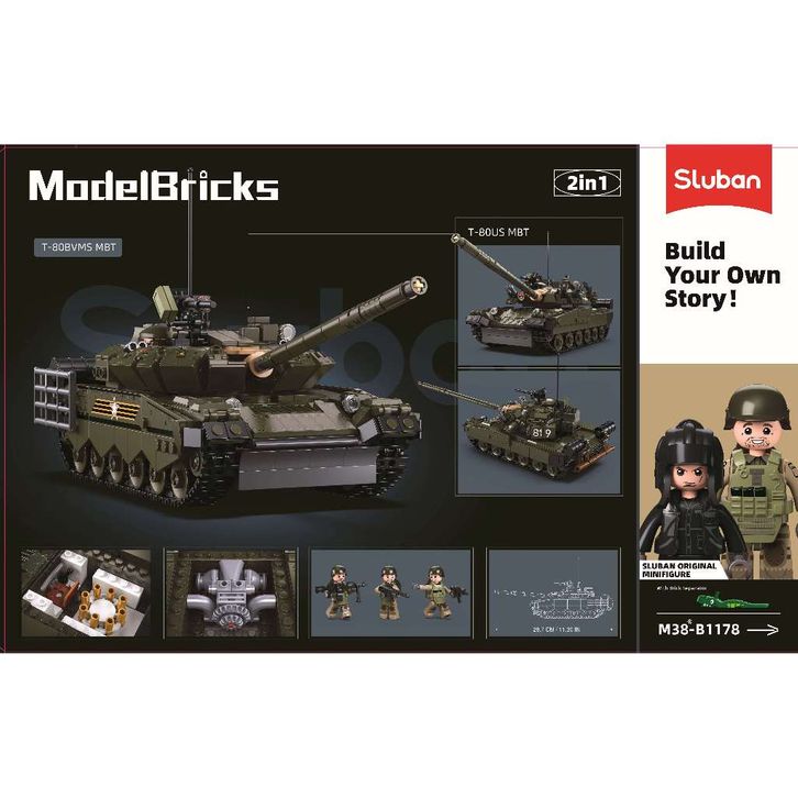 Sluban - Mainan Balok Susun M0Del Bricks T-80BVMS Main Battle Tank M38-B1178