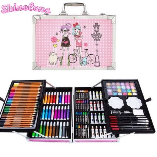 alat tulis sekolah lengkap Crayon Set 145 Pcs Koper Alumunium / Alat Gambar Crayon Set Children Drawing kado anak kado