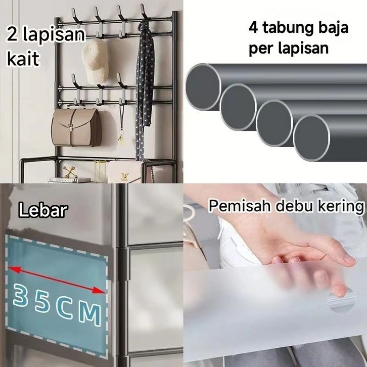 Rak Sepatu Tertutup Anti Debu Multifungsi Gantungan Tas Pakaian Penyimpanan Serbaguna