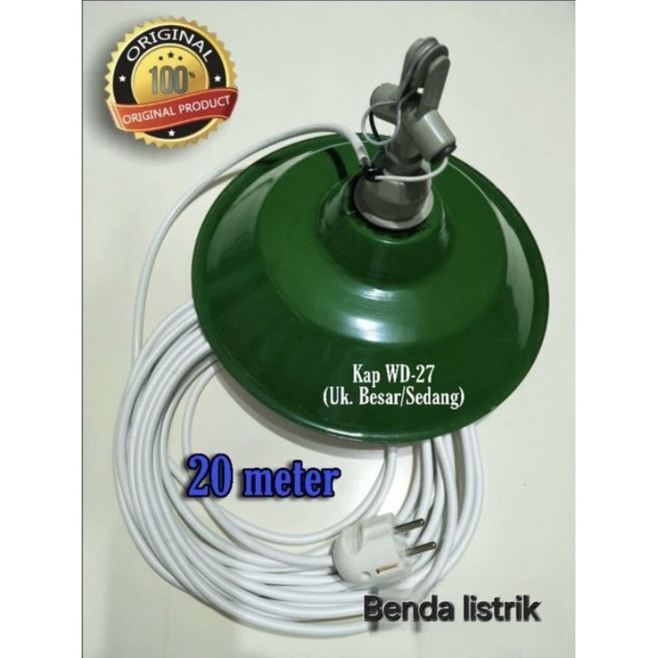 TERBARU Kap Lampu Jalan Gantung E27 + Kabel 5,10,15,20 Meter - Fitiing Lampu Wd e27 + Kabel ( Wd E27 Warna Hijau
