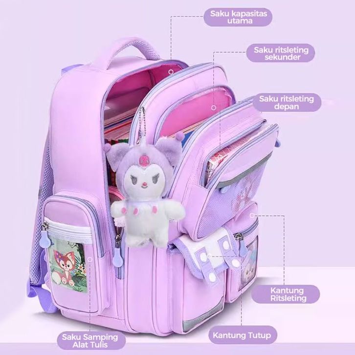 tas sekolah Free Bonus Tas Ransel Korea Kuromi Sanrio Cinnamorol 5in1 Tas Ransel Sekolah Anak Perempuan