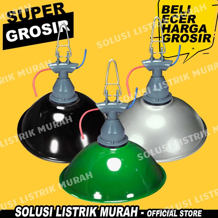 TERMURAH Kap Lampu Jalan 20 CM + Fitting Gantung WD E-27 Kap Lampu Gantung Hijau Hitam obamng