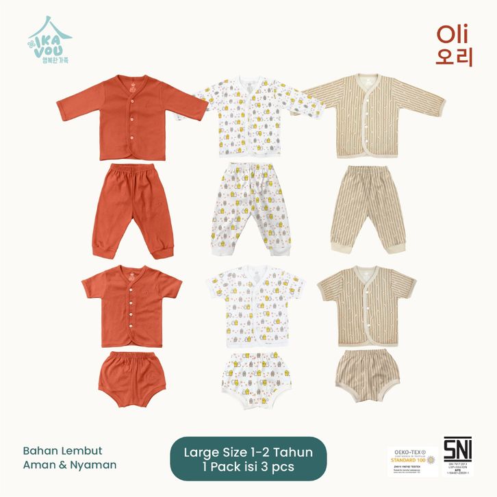 PREMIUM IKAVOU Piyama Bayi Newborn 1 - 2 Tahun – Setelan Tidur Bayi 3pcs "Oli" osidmn
