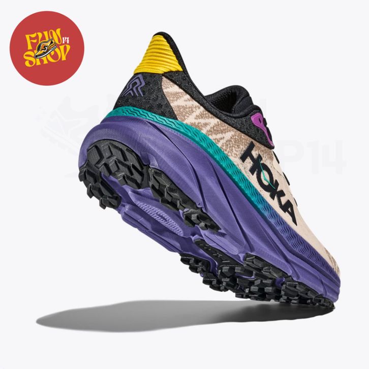 Sepatu Lari Hoka Challenger 7 Men's Trail Running Shoes oatmeal / mountain iris - 1134497OMN