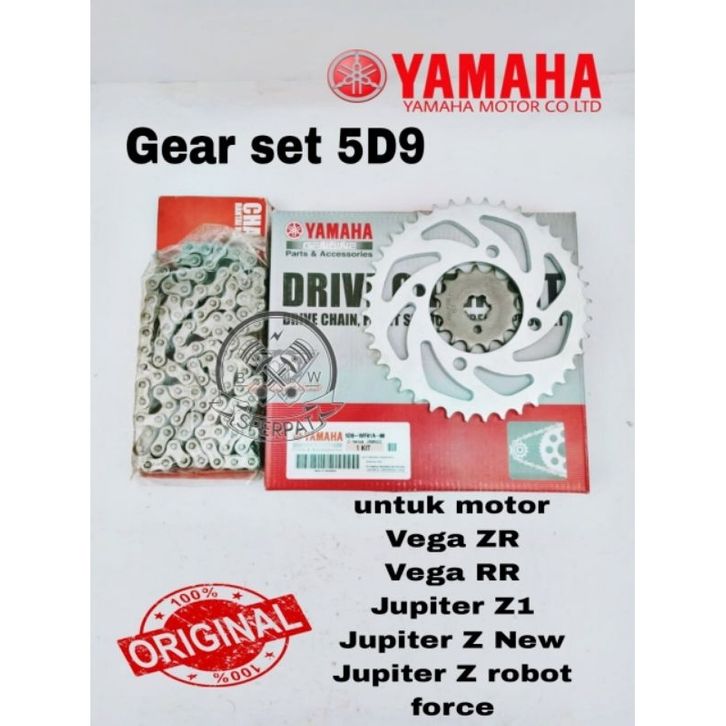 Gear Set Gear Set YAMAHA + Rantai 5D9 untuk Motor VEGA ZR, VEGA RR, JUPITER Z1, JUPITER Z New, JUPITER Robot Force Terb