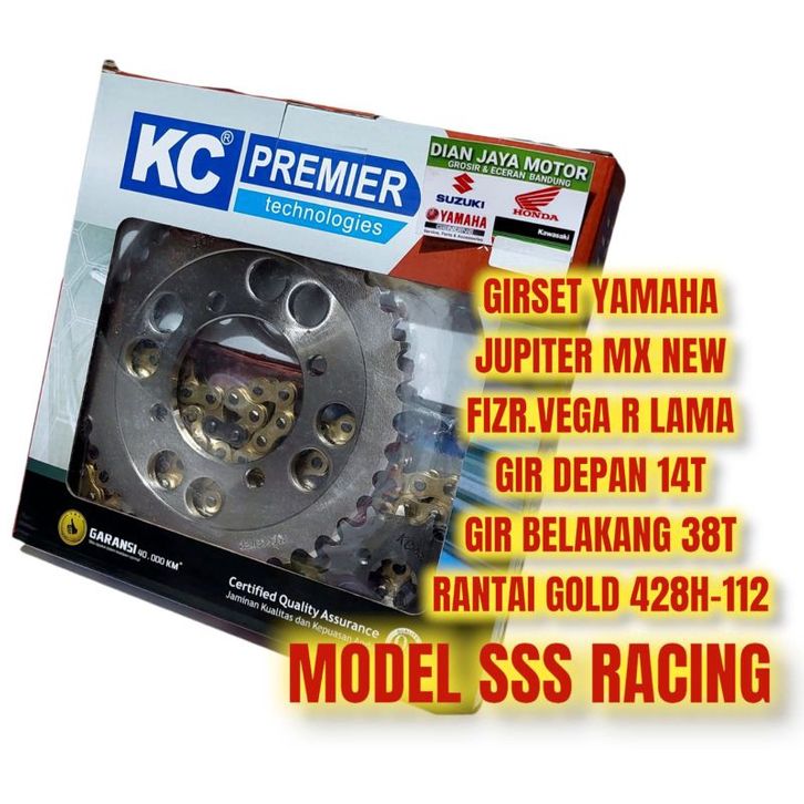 Gear Set KCP Girset Kc Premier Yamaha Jupiter MX New 1S7 14T/38/428H-112 Rantai 9old M0Del SSS Gir Depan Belakang bajja