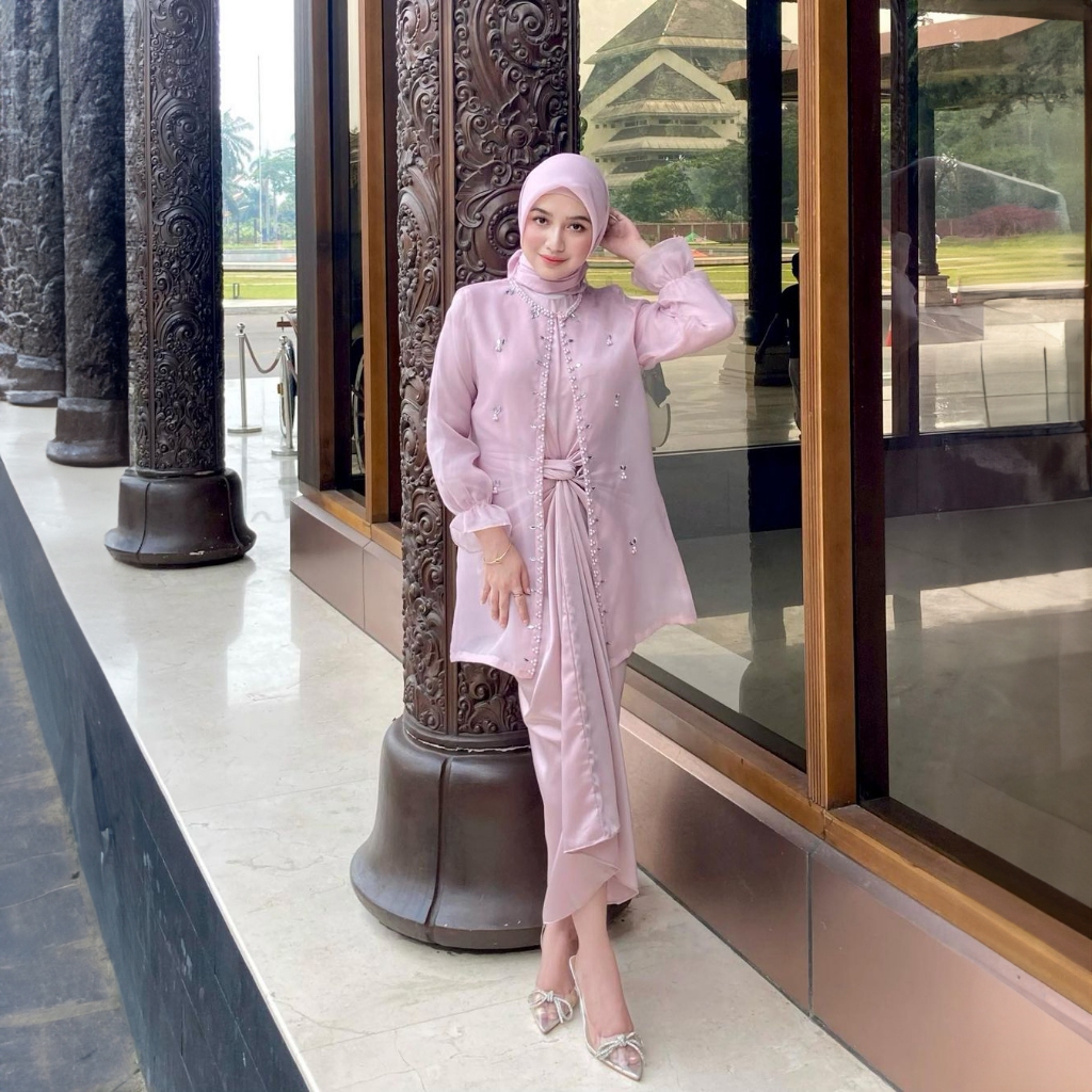 One Set Wanita Kekinian Outer Organza Premium Setelan Kondangan Rok Lilit Outfit Kondangan Kekinian Baju Setelan Wanita