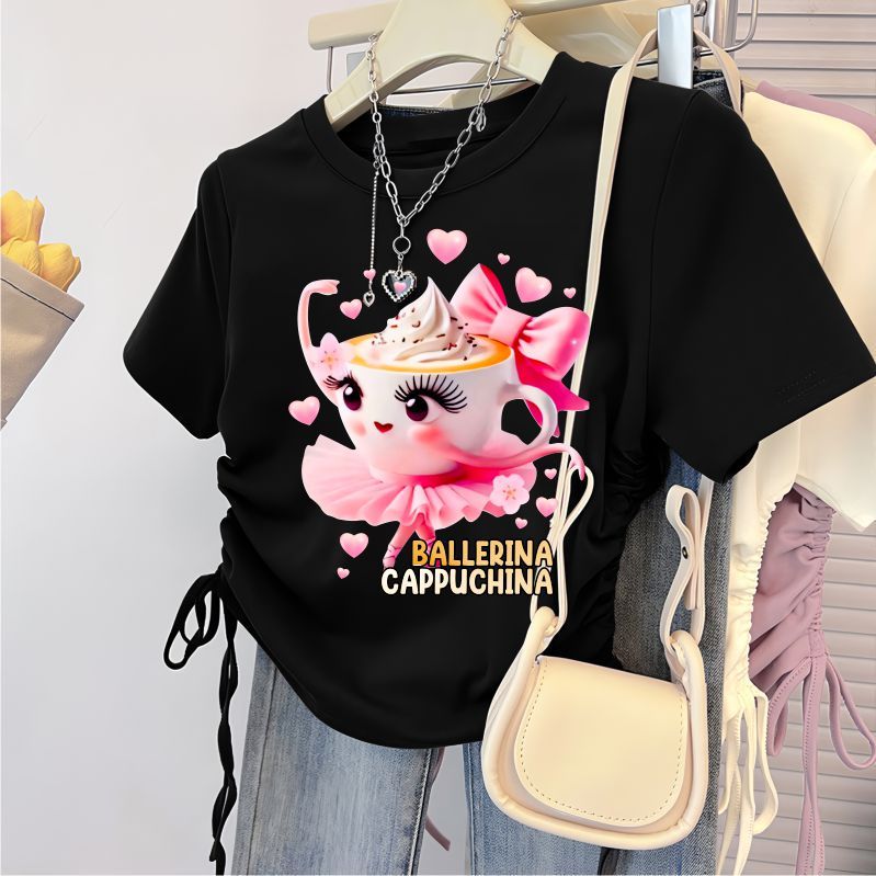Baju crop anak perempuan kaos anak ballerina cappuchina viral usia 1 2 3 4 5 6 7 8 9 10 11 12 tahun