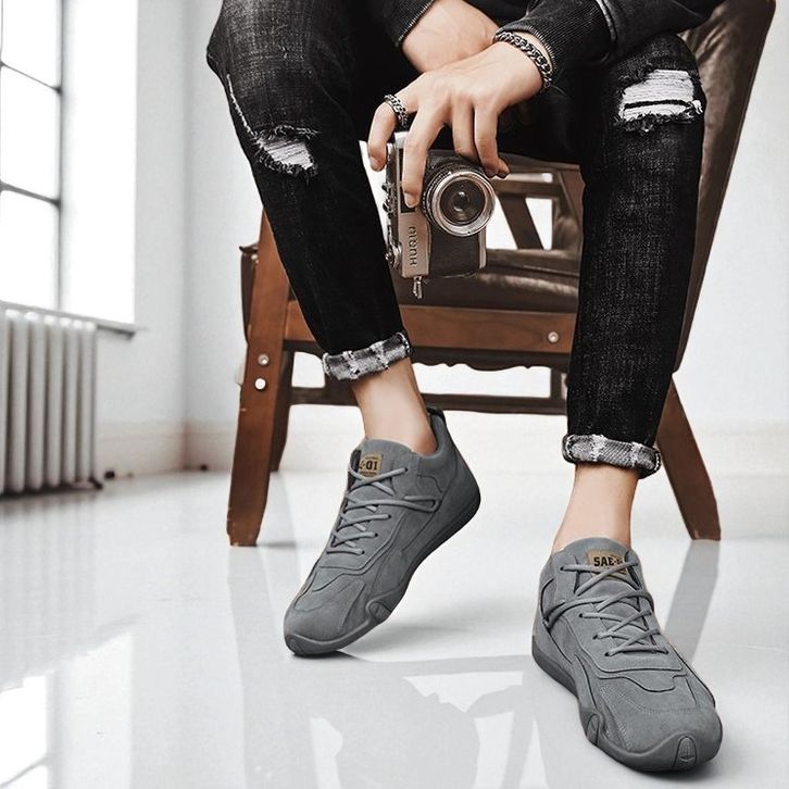 DILOOK S046 Sepatu Sneakers Sepatu Kasual Pria Sepatu Tali Keren Fashion Abu