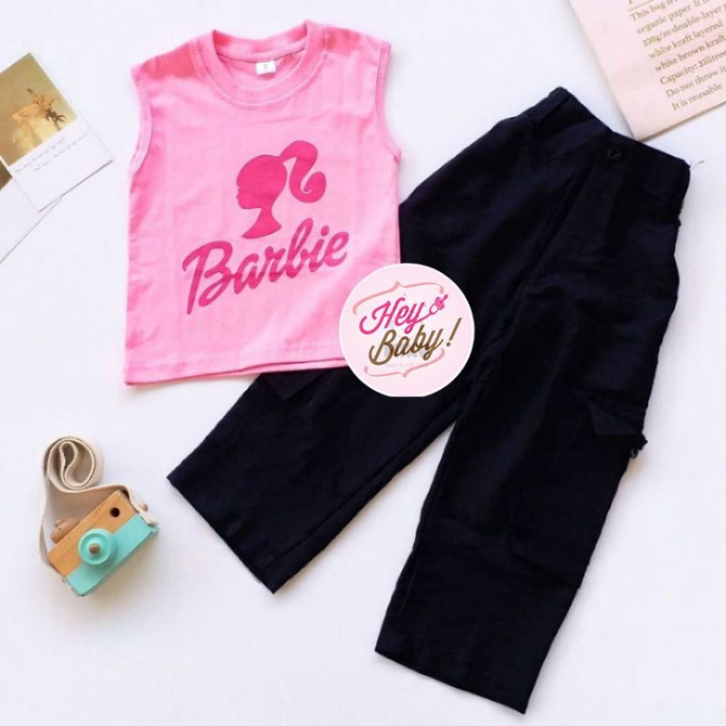 PROMO 7.7 heybaby SET BARBIE KENSI Setelan Kensi Anak Bayi Perempuan Celana Cargo Kaos Barbie Cargo Anak Perempuan