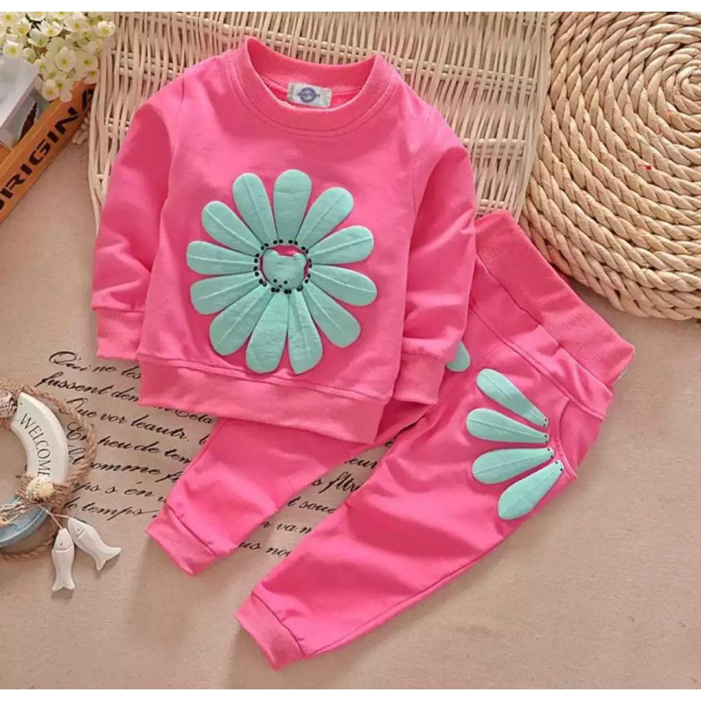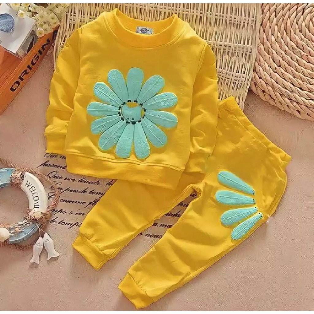 SETELAN SWEATER ANAK PEREMPUAN MOTIF SUN FLOWER 1-5 TAHUN TERBARU