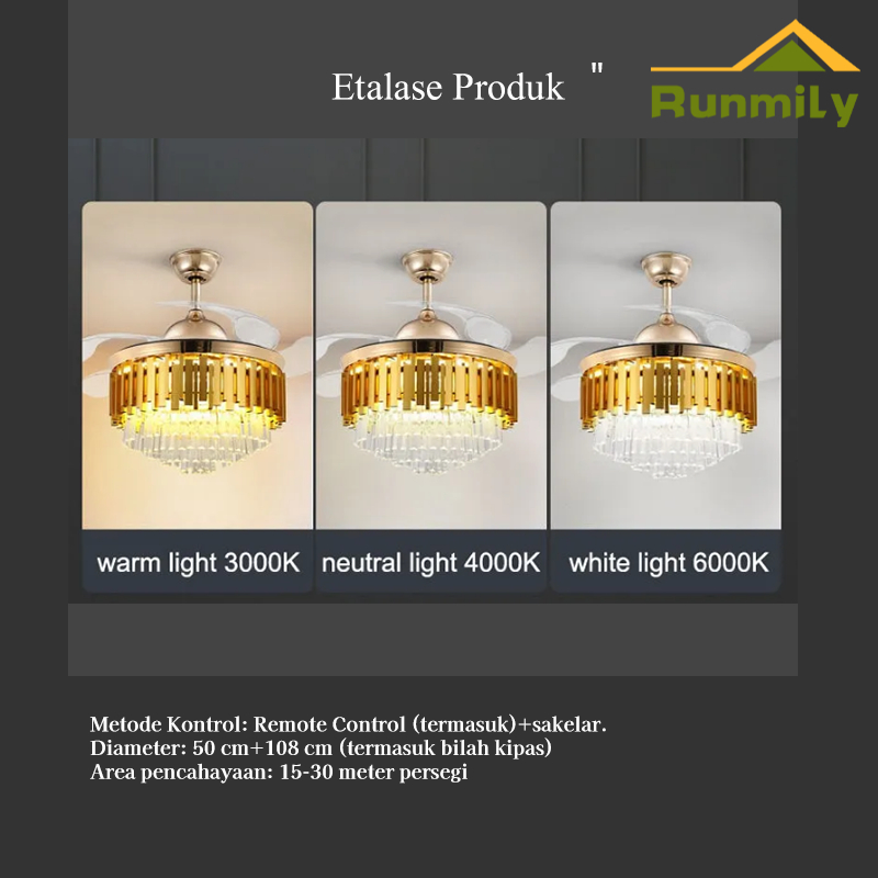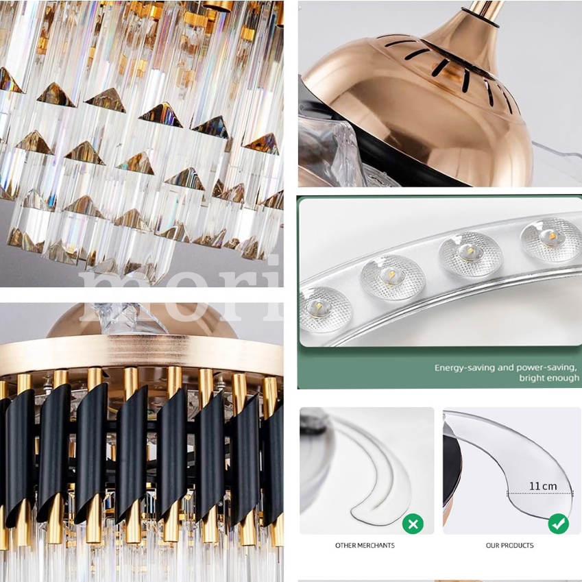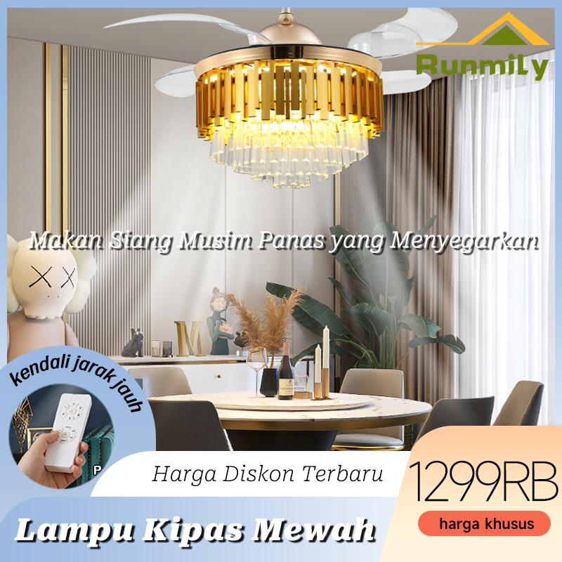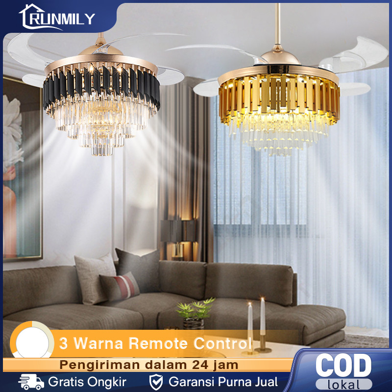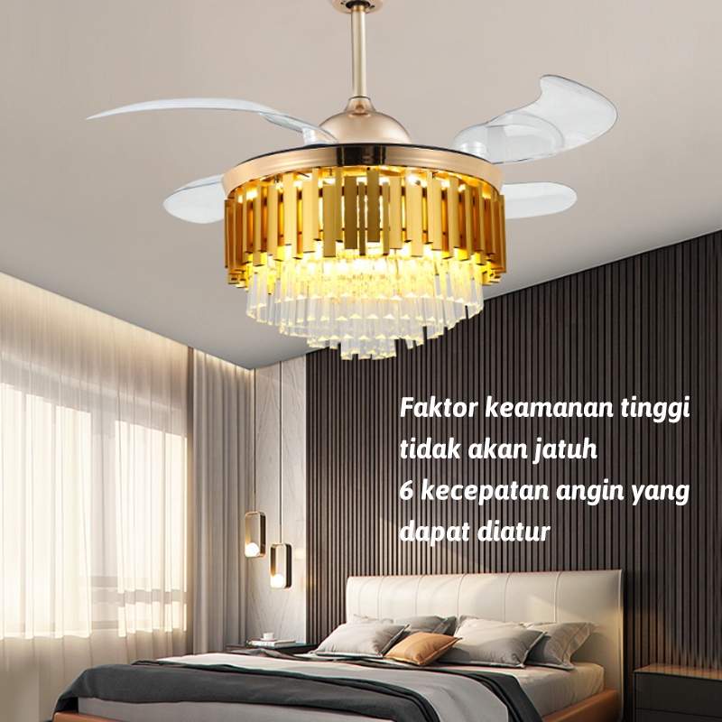 ✨Garansi 1 tahun✨Kipas Angin Lampu Gantung 2IN1 Kristal Chandelier 42inch 50cm 3 Warna LED Remote Mewah Crystal Chandelier Gaya Nordik Minimalis Modern zyp