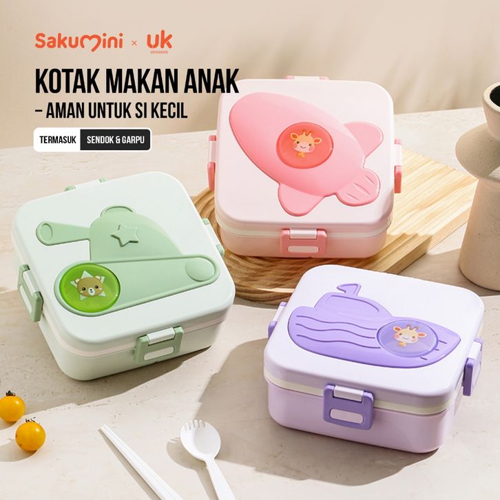 Kotak Makan Anak Anti Tumpah Portable Serbaguna Lunch Box Set 3 Sekat Kotak Bekal Makan Anak Sekolah Best Seller