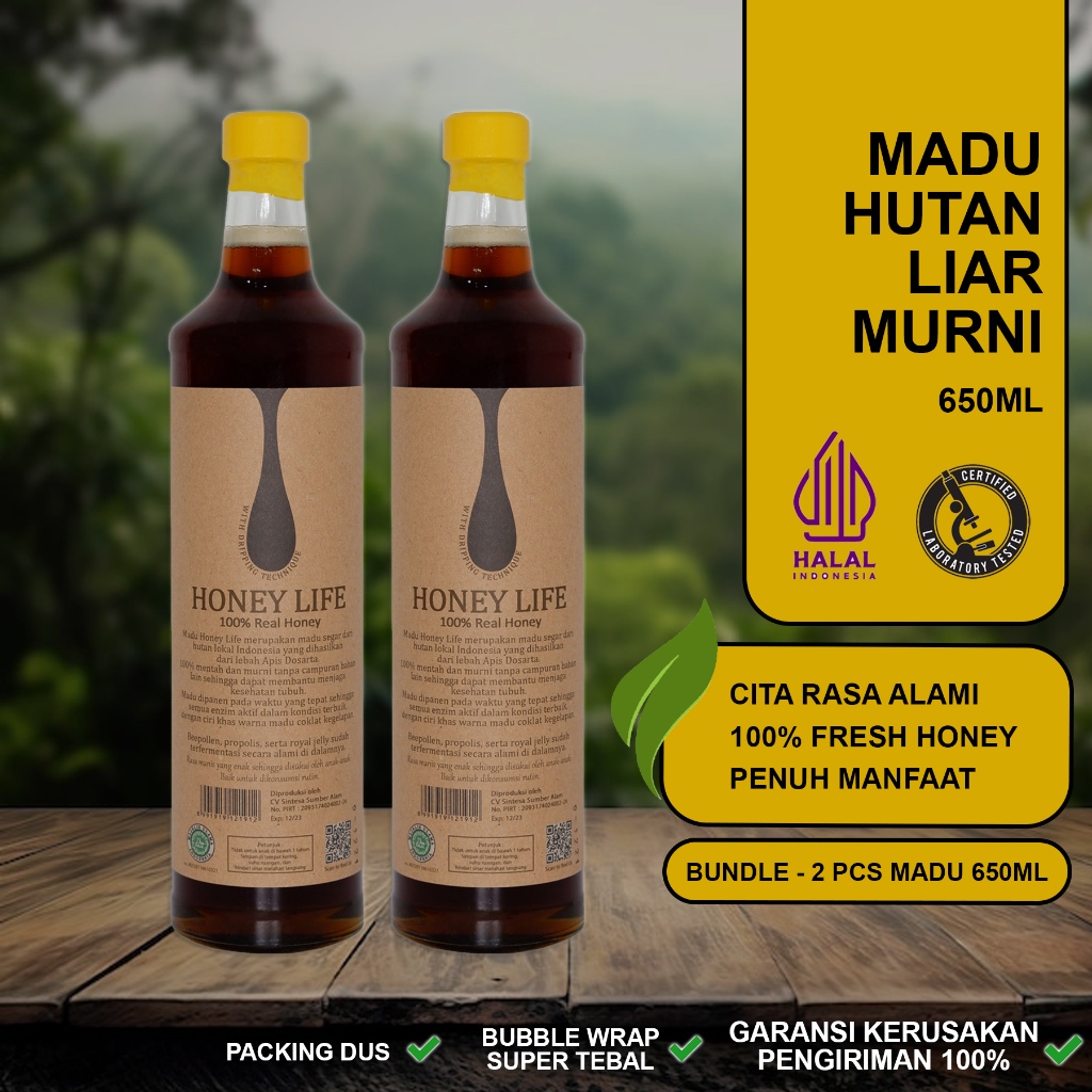 Madu Asli Hutan Honey Life | Madu Murni Forest Honey ( 2 Bottle 650Ml )