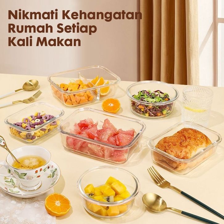 Kotak Makan Anti Tumpah Lunch Box Set 1000ml 3 Sekat Kotak Bekal Makan Anak Kaca Tahan Panas Best Seller