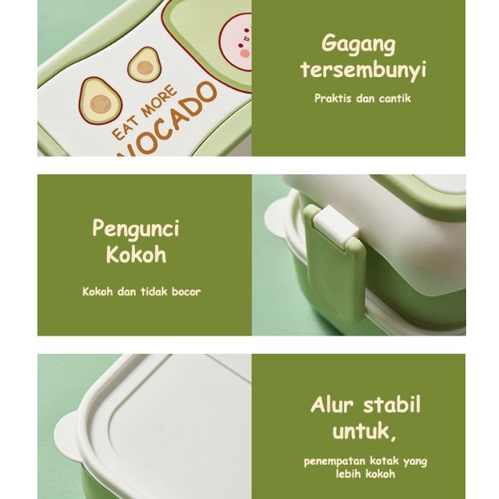 Kotak Makan Anak Anti Tumpah 2 Susun Lunch Box Set 2500ML Kotak Bekal Makan BPA FREE FOOD GRADE Free Alat Makan