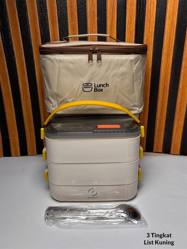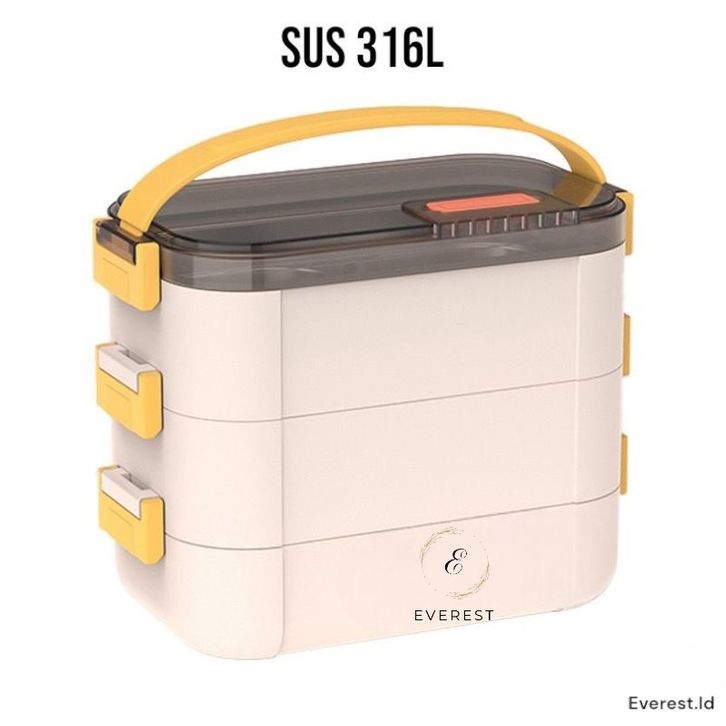 Lunch Box Stainless 3 Tingkat Plastik Layer Stainless Steel SUS 316L Include Bag + Sendok Sumpit