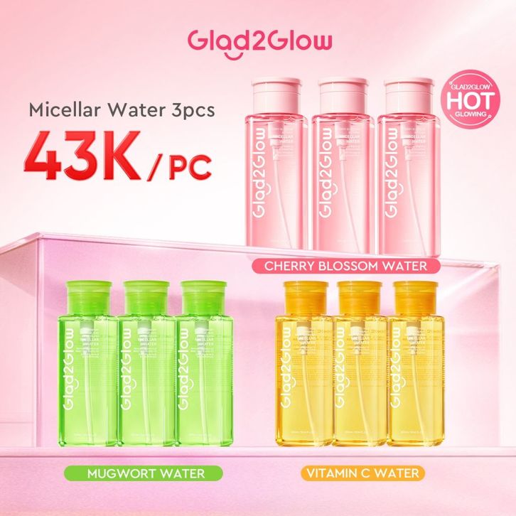 [ SALE 3pcs] Glad2Glow Make Up Remover Cleansing Water 300ml Cherry Blossom Betaine Micellar Water /Mugwort Salicylic A