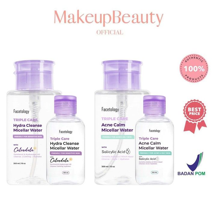 FACETOLOGY Triple Care Hydra Cleanser Micellar Water 300mL | 100mL - Pembersih Wajah Sensitive Skin Pembersih Make Up T