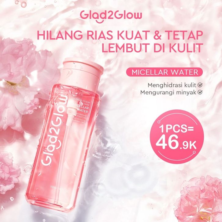 Glad2Glow Cherry Blossom Betaine Micellar Water 130ml & 300ml cleansing oil pembersih wajah