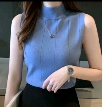 tunlenck wanita tengtop Rajut Amanda garis tengtop blues Korean lekbong spandek terbaru