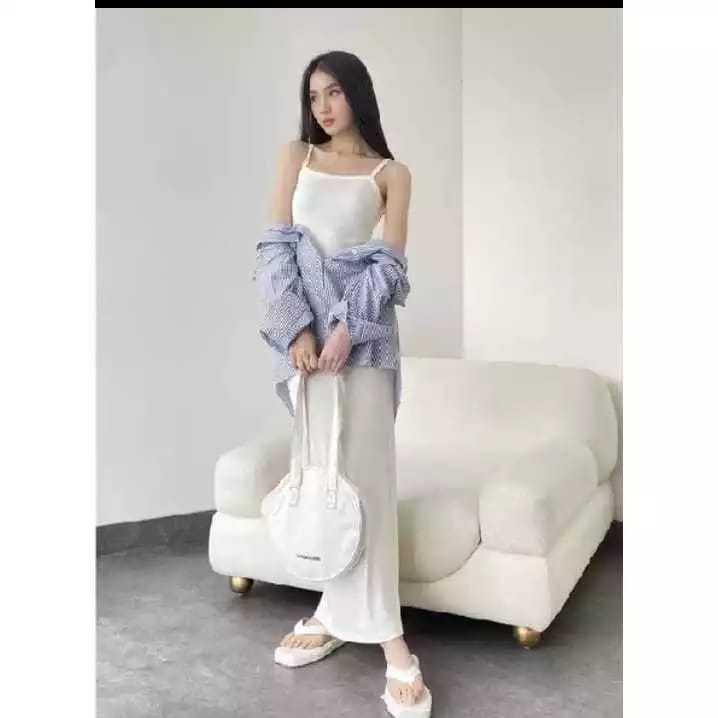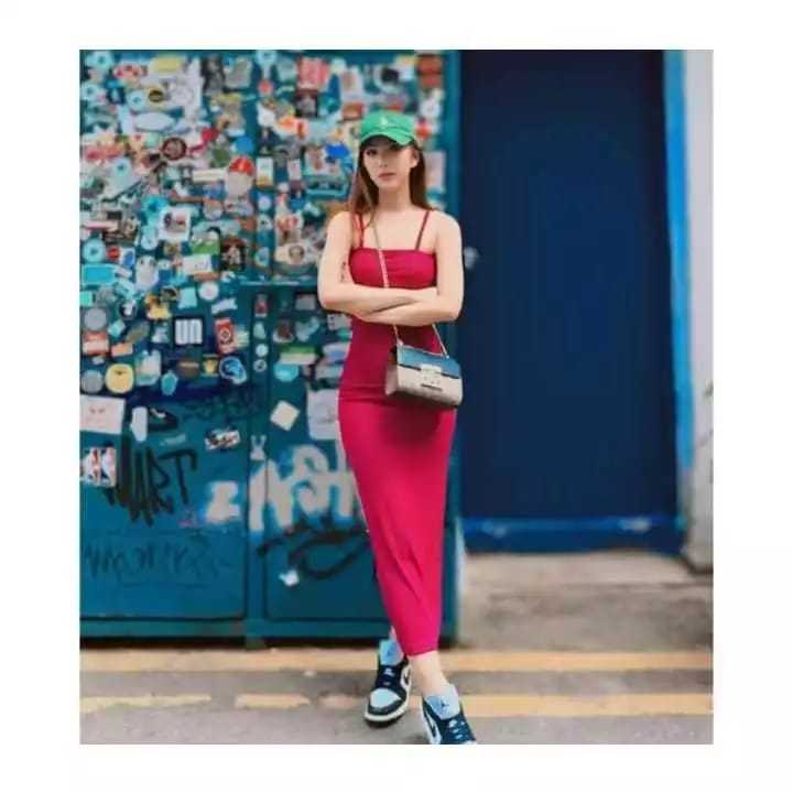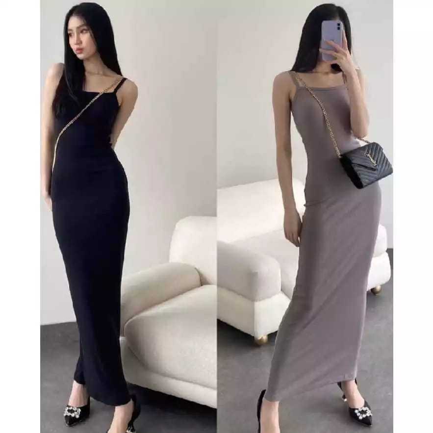 Viral Dress Longdress Tanktop Maxi Panjang Tali Kecil Spaghetti Korean Style Bodycon Terbaru